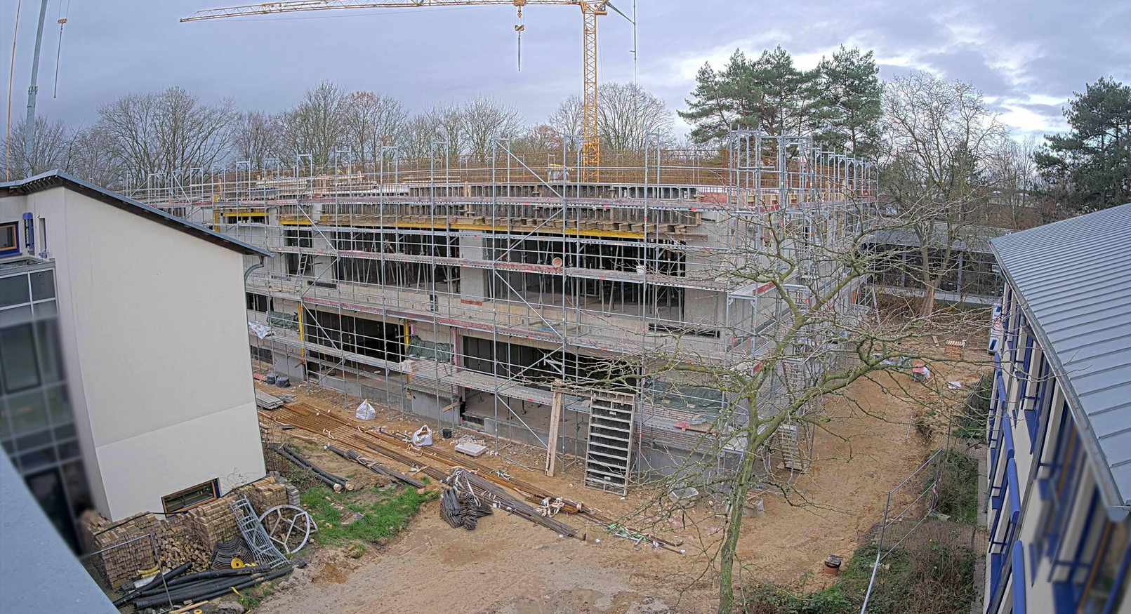 Sie können den Fortschritt des Schulbauprojekts mit Baustellenkameras verfolgen.