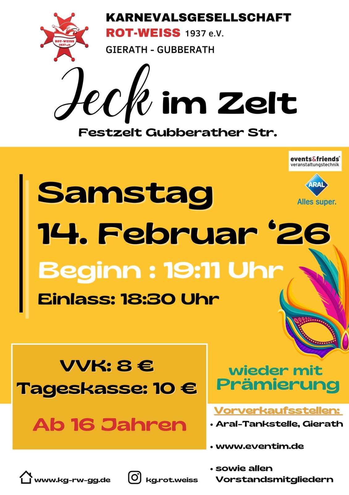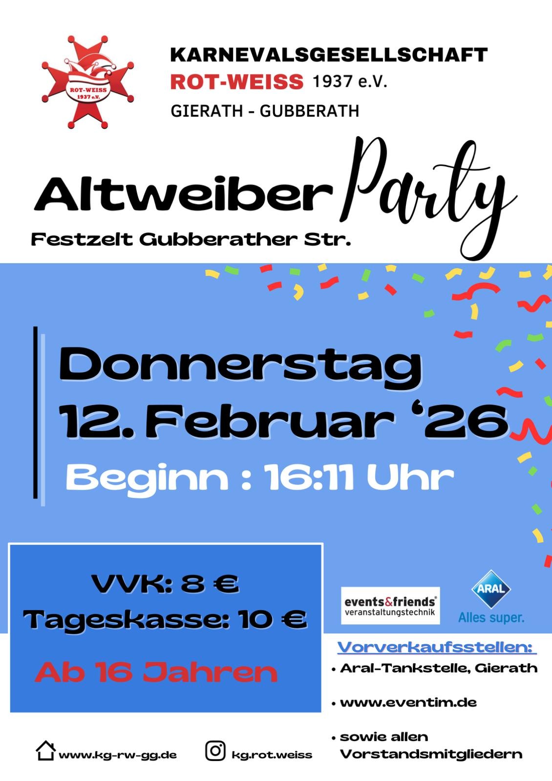Altweiber (12.02.2026): 8:30 bis 11:11 Uhr