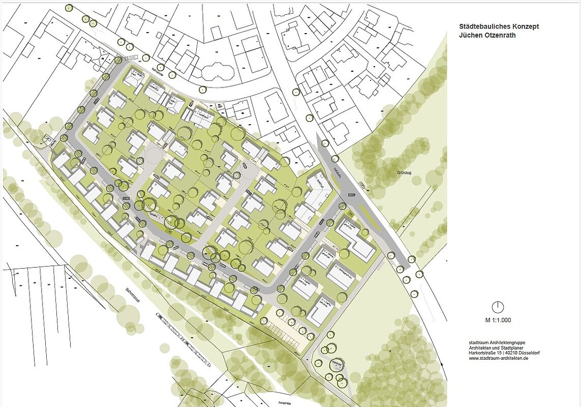 Am südlichen Siedlungsrand des Stadtteils Otzenrath entwickelt die RWE Power AG in enger Zusammenarbeit mit der Stadt Jüchen auf einer Fläche von rund 2,6 ha ein innovatives, ressourcenschonendes und energieeffizientes Wohngebiet. Insgesamt sollen bis zu 100 Wohneinheiten in Form von Einfamilienhäusern, Doppelhaushälften, Kettenhäusern sowie Mehrfamilienhäusern entstehen.