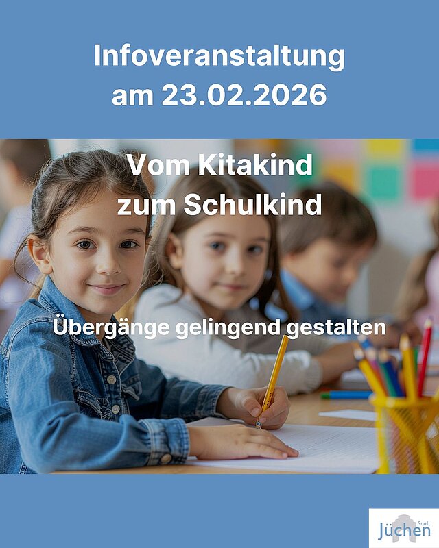 Das Familienzentrum Jüchen bietet am Montag, 23. Februar von 19.00 bis 21.15 Uhr eine Infoveranstaltung zum Thema „Vom Kitakind zum Schulkind - Übergänge gelingend gestalten“ an. Die Veranstaltung richtet sich an Eltern, deren Kind 2026 oder 2027 in die Schule kommt. Für Kinder beginnt mit der Einschulung ein wichtiger neuer Lebensabschnitt. Erstklässler tauschen den vertrauten Kindergarten, in dem das Spielen im Mittelpunkt stand, gegen die Schulbank ein. Es braucht seine Zeit, bis die Kinder sich an den anderen Tagesablauf, das neue Umfeld und die Menschen um sich herum gewöhnen. Auch zu Hause mag sich durch die neue Situation einiges ändern. Es ist gut, wenn die Kinder in dieser Phase des Übergangs von ihren Eltern Sicherheit und Geborgenheit erfahren.