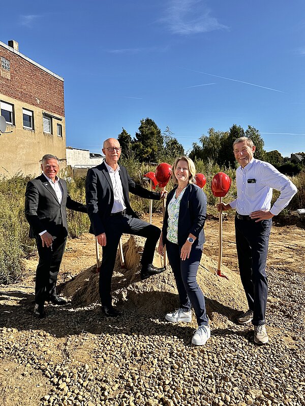 Foto (Stadt Jüchen) v.l.: Landrat Hans-Jürgen Petrauschke, Bürgermeister Harald Zillikens, Technische Dezernentin Sabine Janclas, Pyramis Entwicklungs GmbH Günter Kozlowski