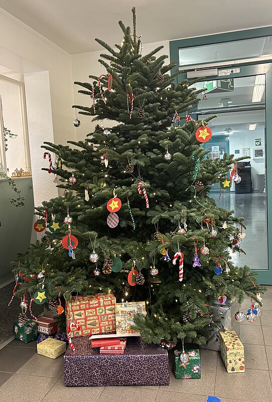 Der Bürgermeister lobte die eifrigen Helferinnen und Helfer für die liebevoll gefertigte Dekoration und bedankte sich bei ihnen mit einem Korb voller Leckereien und Obst. Mit dem kreativ gestalteten Baum zieht nun weihnachtliche Stimmung in das Rathaus ein.