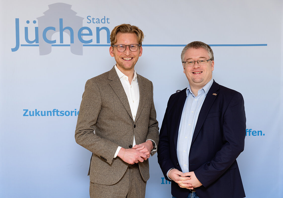 Bürgermeister Philipp Sieben hat sich in der vergangenen Woche in zwei Terminen mit Mitgliedern des Deutschen Bundestags ausgetauscht. In separaten Treffen begrüßte er Ansgar Heveling (CDU) und Daniel Rinkert (SPD) im Jüchener Rathaus. Es fand ein konstruktiver Austausch über lokale Themen statt.
