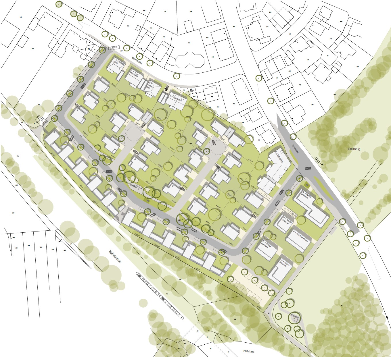Die Entwicklung dieses Baugebietes steht noch am Anfang. Es gibt noch keinen rechtskräftigen Bebauungsplan, keine Grundstücksaufteilung, keine Strategie zur Vermarktung, die Stadt ist nicht Eigentümer der Flächen, etc.