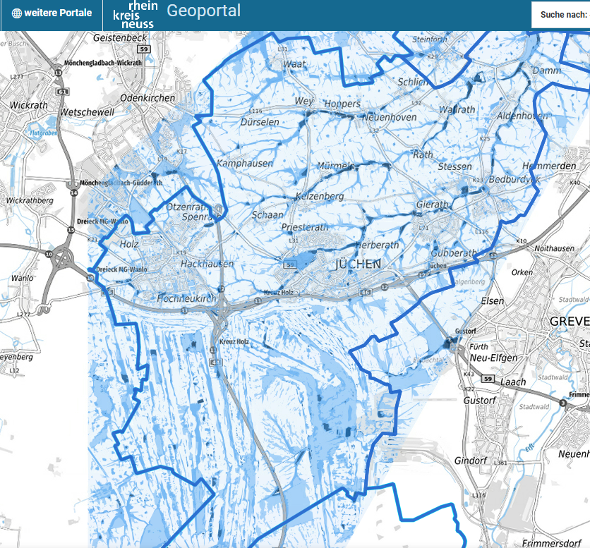An dieser Stelle sei darauf hingewiesen, dass die Stadt Jüchen Ihnen gerne die Karten und den Umgang damit erläutert. Eine persönliche Beratung im Sinne eines Eigenschutzes Ihres Objektes kann nicht durch die Stadt Jüchen erfolgen.